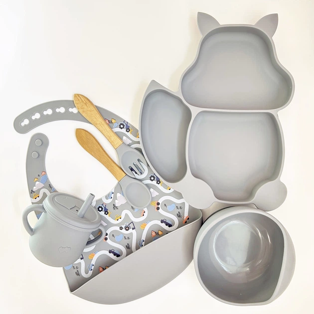 Набір дитячого посуду RA 2349 кролик принт дерево Y18 сірий Newsun