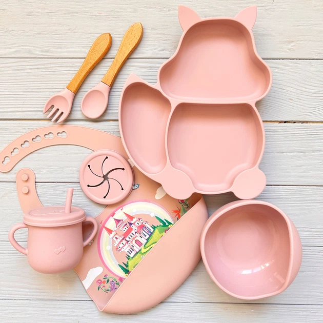 Набір силіконового посуду Y26 imge2298 з тарілкою у вигляді Білочки Newsun