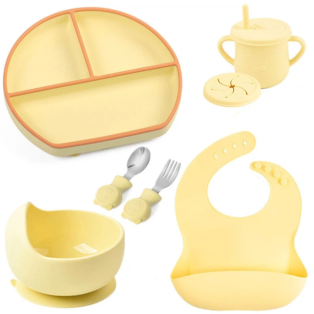 Набір дитячого силіконового посуду Y13 тарілка слинявчик тарілка для супу ложка вилка поїльник (vol-10085)