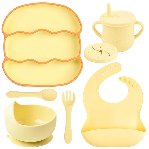 Набір дитячого силіконового посуду 2Life Y11 із 7 предметів із дерев'яними приладами Жовтий (v-11363)