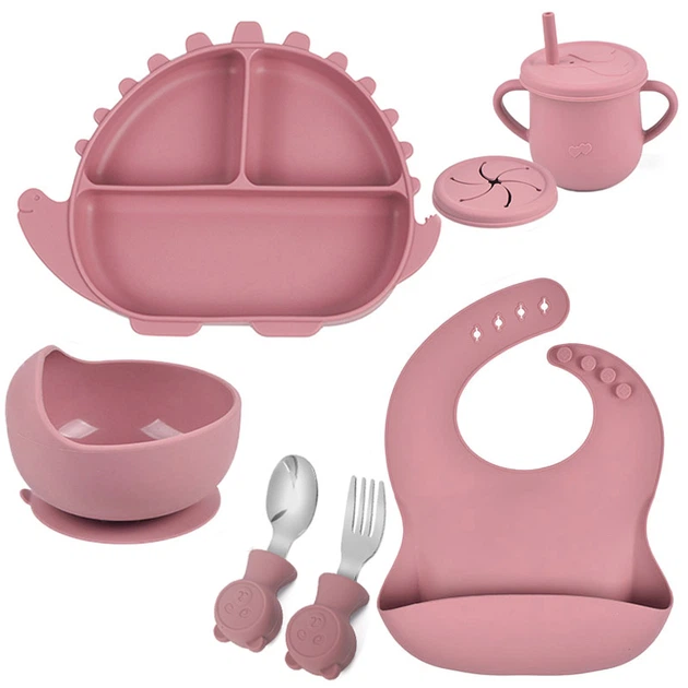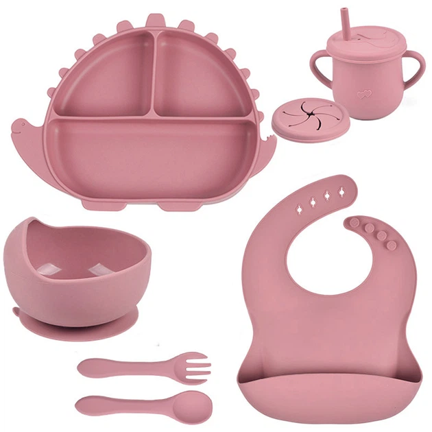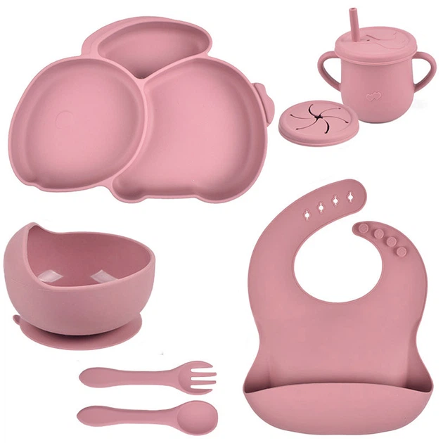 Набір силіконового посуду 2Life Y19 із 7 предметів на присосці Рожевий (v-11291)