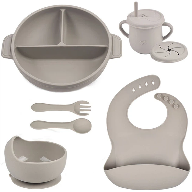 Набір дитячого силіконового посуду 2Life Y20 із 7 предметів Сірий (v-11508)