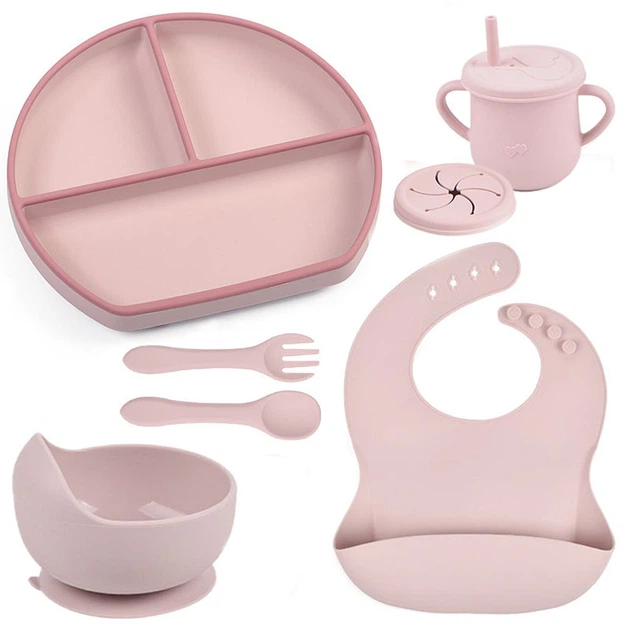 Набір силіконового посуду 2Life Y4 із 7 предметів на присосці Рожевий (v-11285)