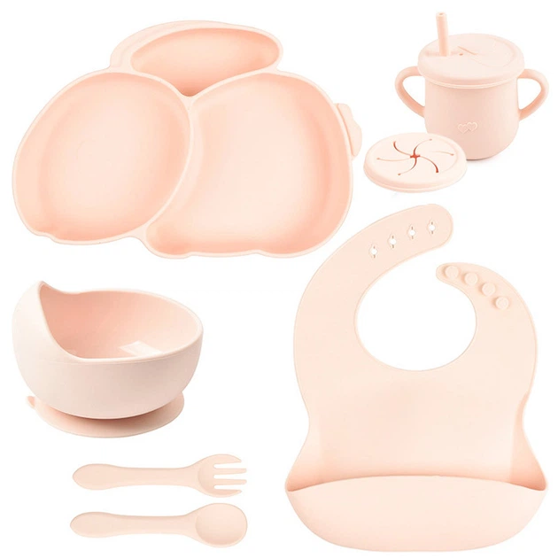 Набір дитячого силіконового посуду 2Life Y26 з 7 предметів Рожевий (v-11367)