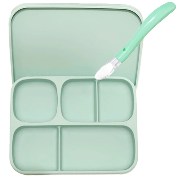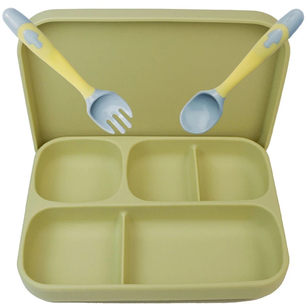 Силіконова п'яти-секційна тарілка з кришкою та ложка вилка змінює форму 2Life А1 3 предмети Зелений (vol-10750)