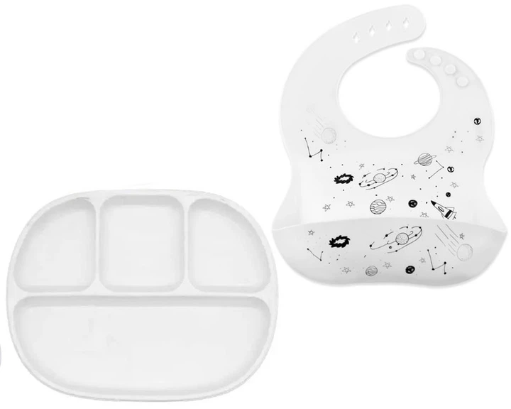 Набір силіконовий посуд 2Life D14 і слинявчик космос Білий (v-11764)