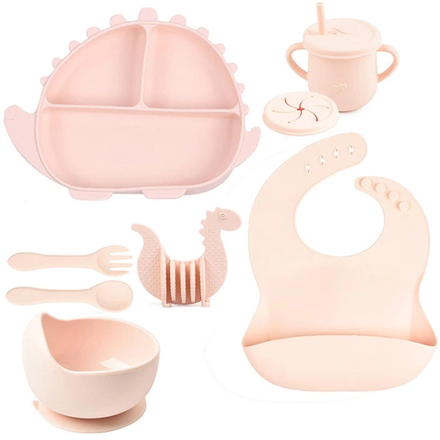 Набір дитячого посуду 2Life Y3 з 8 предметів і прорізувач Динозавр Рожевий n-12049