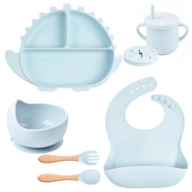 Силіконовий посуд для дітей, секційна тарілка, прибори, чашка з твердим носиком Мятний