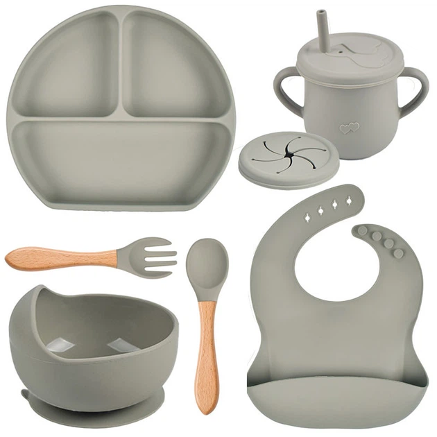 Набір дитячого силіконового посуду 2Life Y20 7 шт Сірий (vol-10087)