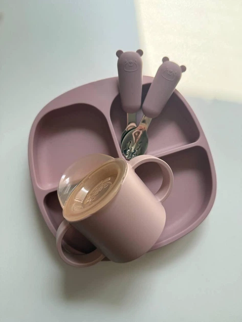 Силіконовий посуд для дітей, секційна тарілка, прибори, чашка з твердим носиком Пудровий