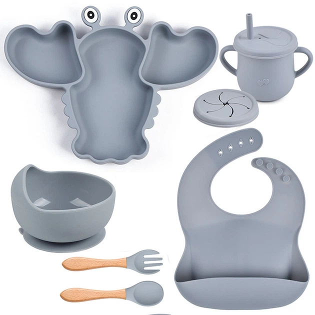 Набір посуду 2Life Y18 трьохсекційна тарілка Рак поїльник прибори слюнявчик Сірий v-11190