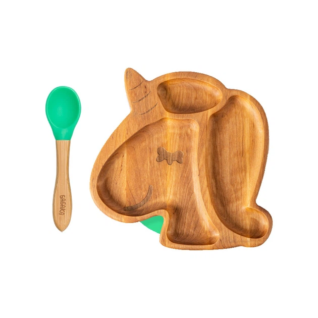 Набір 2в1 секційна тарілка Єдиноріжка на присосці та Ложка Бабака Зелений (310222)