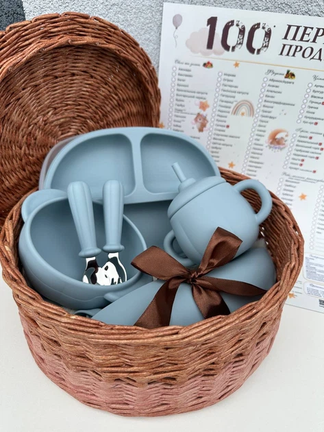 Посуд силіконовий дитячий набір класичний синій Пакунок малюка