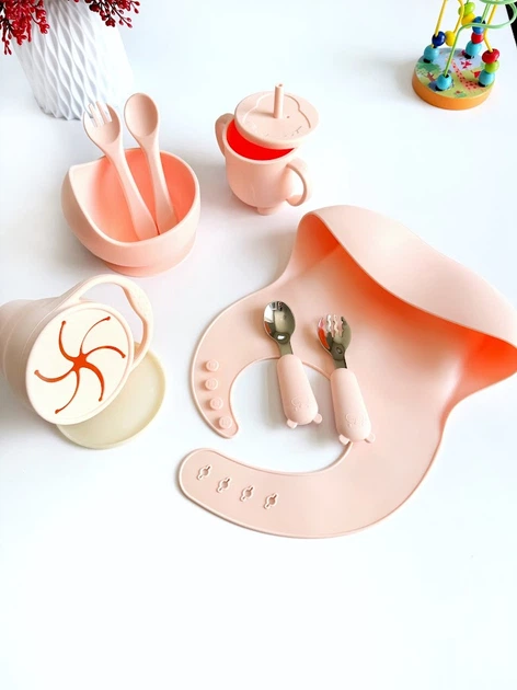 Набір дитячого силіконового посуду для прикорму, персиковий PKS-175