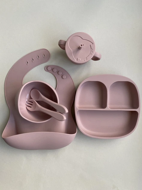 Набір силіконового посуду для дітей, 6 в 1, дитячий посуд для прикорму Пудровий