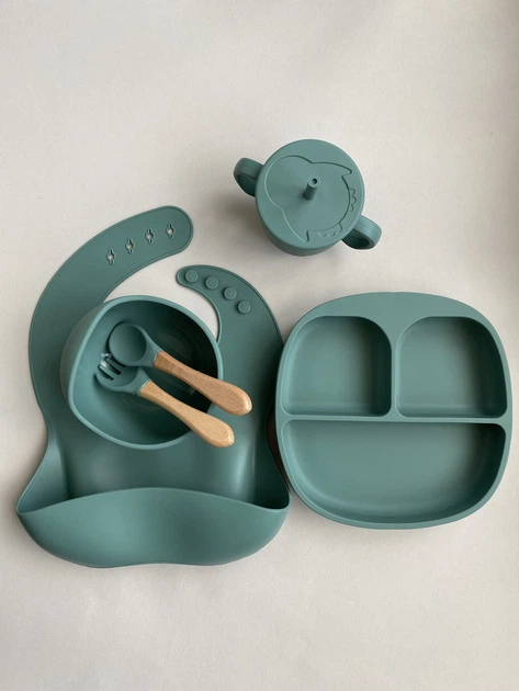 Дитячий набір посуду з силіконовими приборами хакі (B35)