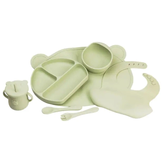 Дитячий набір силіконового посуду 7 предметів Зелений 4808190