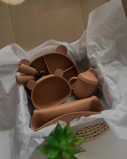 Дитячий силіконовий посуд для прикорму на присосках, набір дитячого посуду, нагрудник, секційний, глибокий Кемел