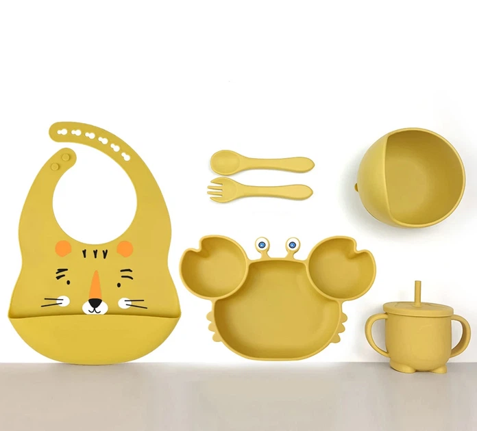 Набір посуду для годування дітей із 4 предметів із 100 харчового безпечного силікону Little Crab