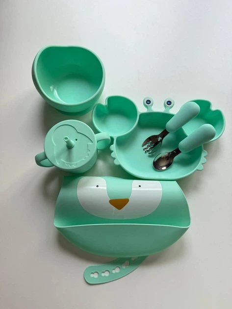 Набір силіконового посуду для дітей, 6 в 1, дитячий посуд для прикорму Пакунок малюка Мятний