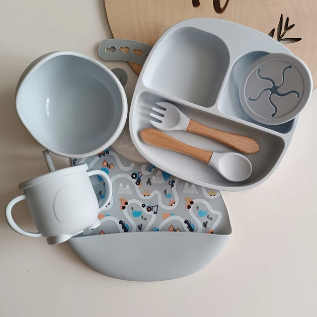 Набір дитячого силіконового посуду для прикорму малюка Лід Світлий 7 од (0275)