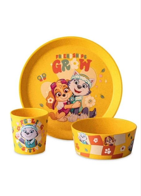 Набір дитячого посуду веселка бежевий з нагрудником динозаври
