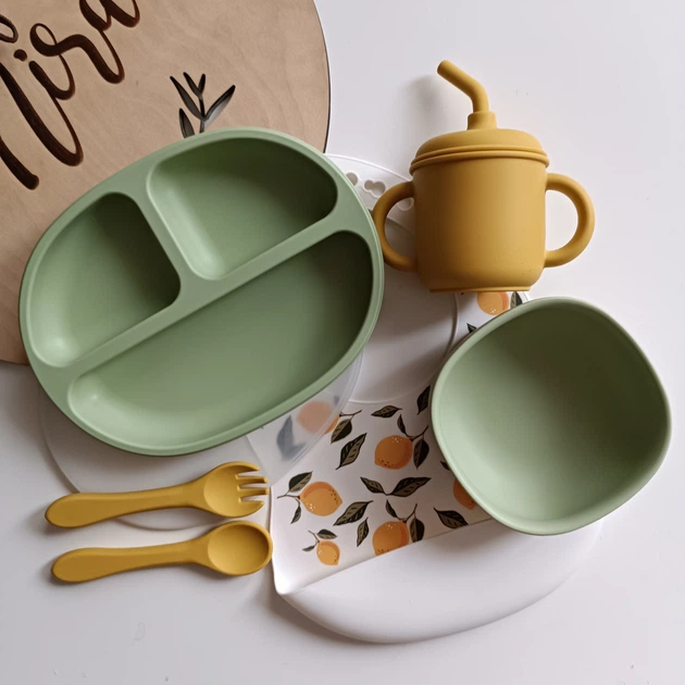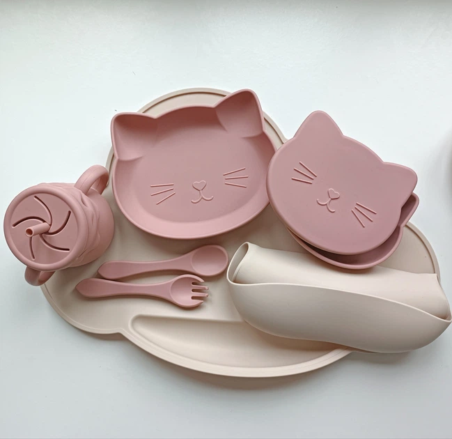 Набір комплект силіконового дитячого посуду для девочки 6 предметів