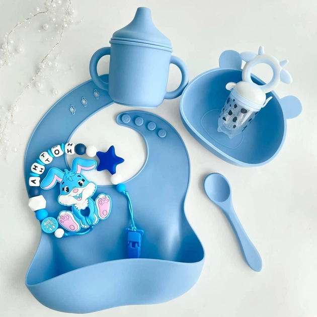Набір дитячого силіконового посуду для першого прикорму 7 од Дитячий посуд на присоосках (0299)
