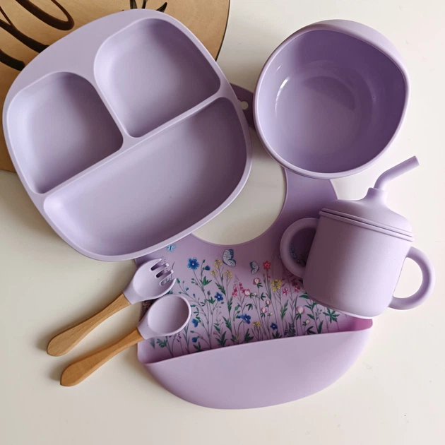 Набір дитячого посуду для першого прикорму для дівчинки лаванда фіолет 6 од (0278)