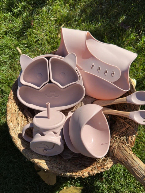 Набір дитячого силіконового посуду із 6 предметів Пудровий із безпечного та харчового силікону