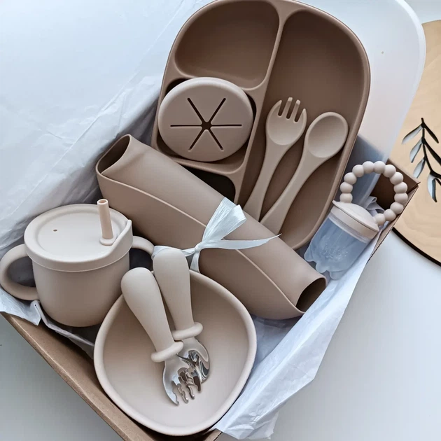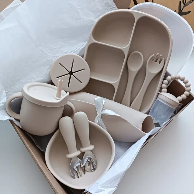 Набір посуду для малюка Капучино беж 10 шт Посуд для годування малюка з харчового силікону (0327)