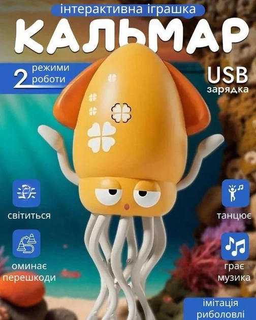 Дитяча інтерактивна іграшка танцюючий восьминіг на акамуляторі бігаючий кальмар що танцює їздить ходить бігає музичний кальм