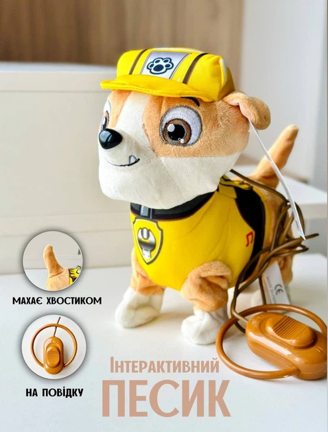 Інтерактивна м'яка іграшка "Щенячий патруль" на повідку з дистанційним керуванням 20х10х23 см щеня - Роккі (034t)