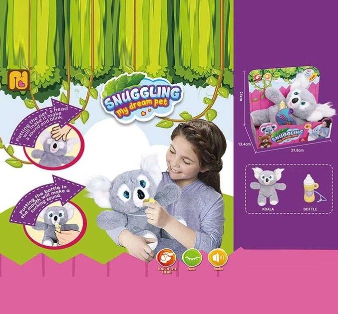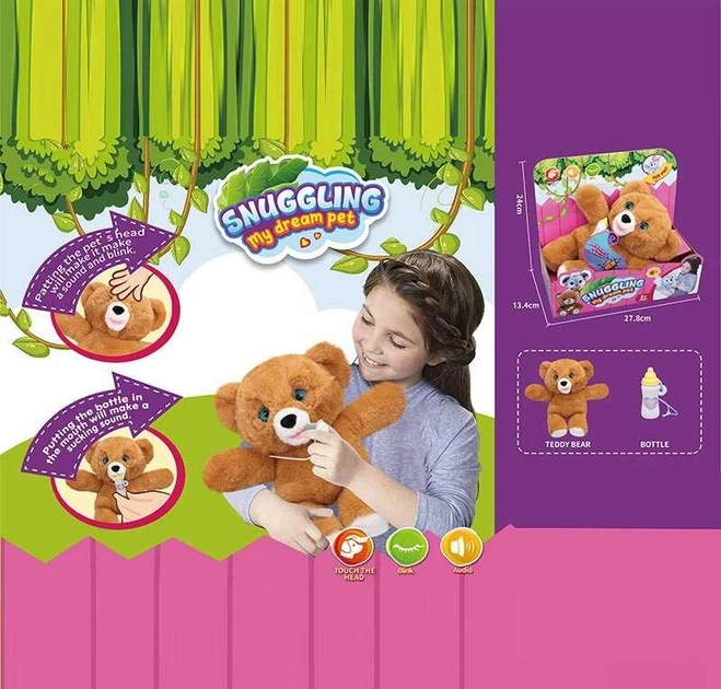 Інтерактивна тваринка 933-214 E кліпає, сенсорний та магнітний датчик, звук, пляшечка, в коробці