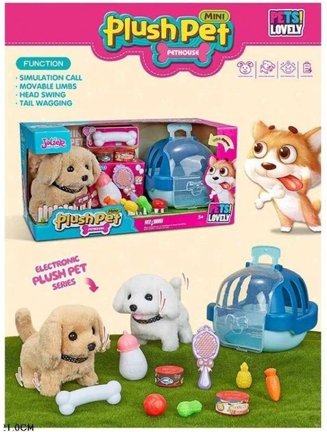 М'яка іграшка для дітей Інтерактивна Собачка в перенесенні з аксесуарами Mini Plush Pet