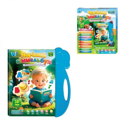 Інтерактивна книга "Чарівний іммельбух", ОЗВУЧЕНО УКРАЇНСЬКОЮ МОВОЮ, 10 тем, цифри, алфавіт, скоромовки, в коробці (TS010919
