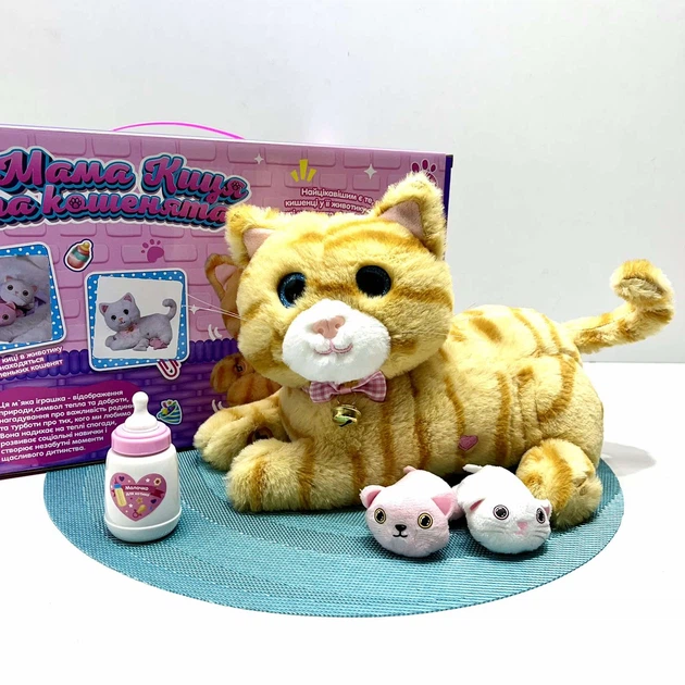 Кішка інтерактивна з кошенятами TK Group звуки мелодії пісні англійською функція запису голосу сенсорна зона на спинці Руда