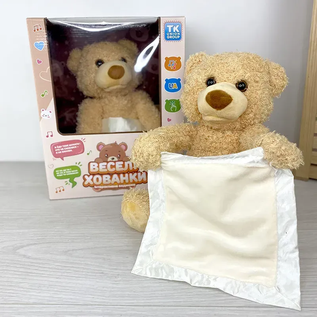 Плюшевий ведмедик Веселі хованки іграшка для гри в хованки, українське озвучування, розвивальний подарунок TK Group