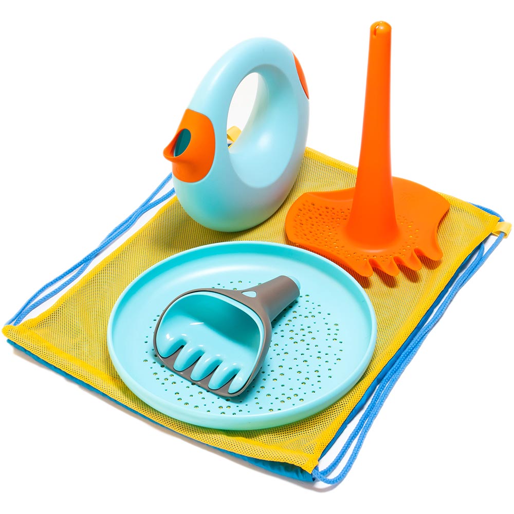 Від 1,5 років Літо наступає! Збирайте всі 11 аксесуарів у візочок і вирушайте на пляж! Симпатичний візок з чудернацькою ручкою включає корисні аксесуари для гри в пісочниці і на пляжі: • велике відерце з ситом для піску • лопатку • грабельки • кораблик • пасочку-рибку • 3 маленьких відерця з отворами, які можна вкладати одне в одне, ставити один на одного у вигляді вежі та