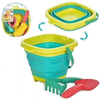 Пісочний набір - відерце, лійка, лопатка, граблі-сито, 3 формочки