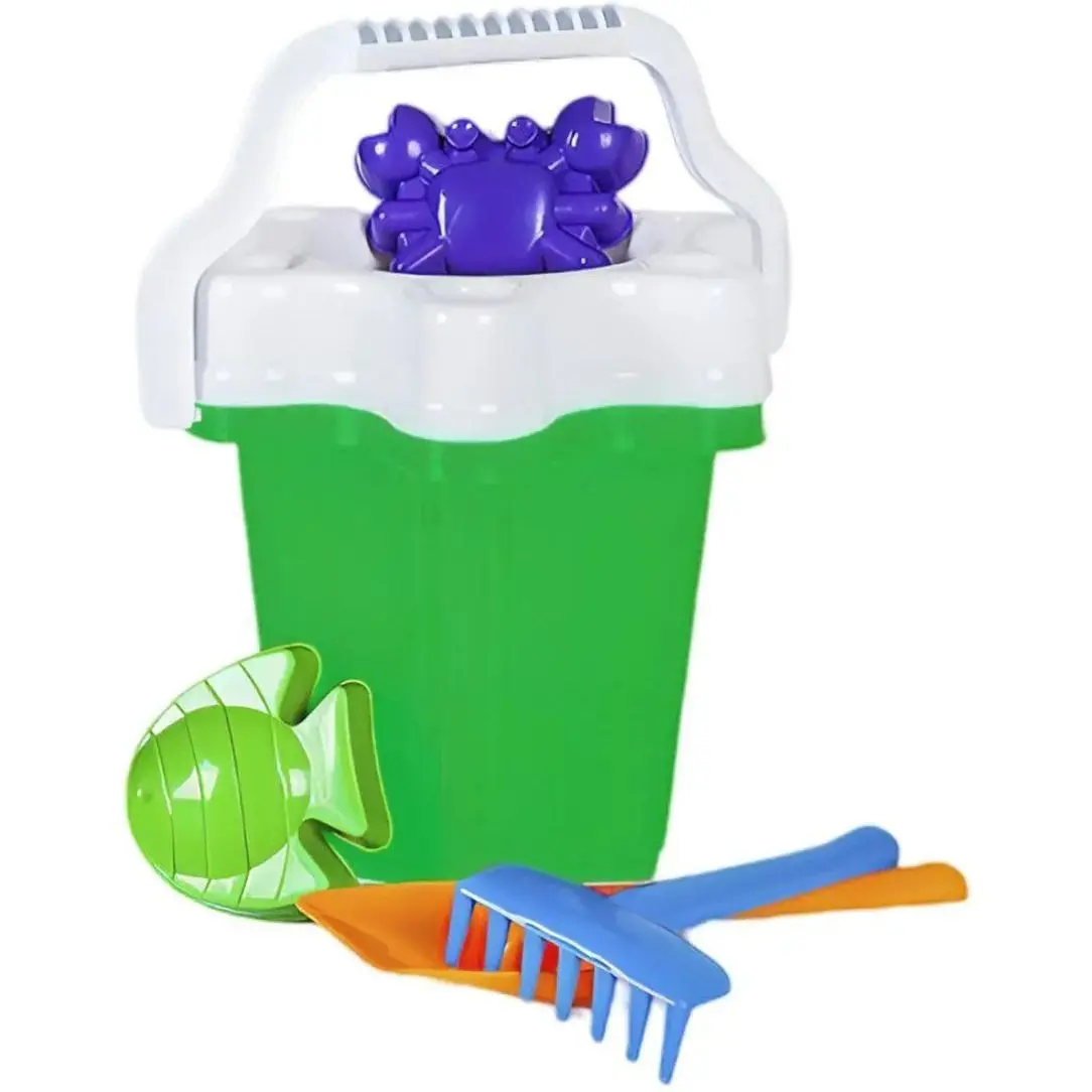 Пісочний набір Bamsic 012/5G з відерцем Квіточка-2 яскравий комплект із 6 елементів для ігор на вулиці, зелений