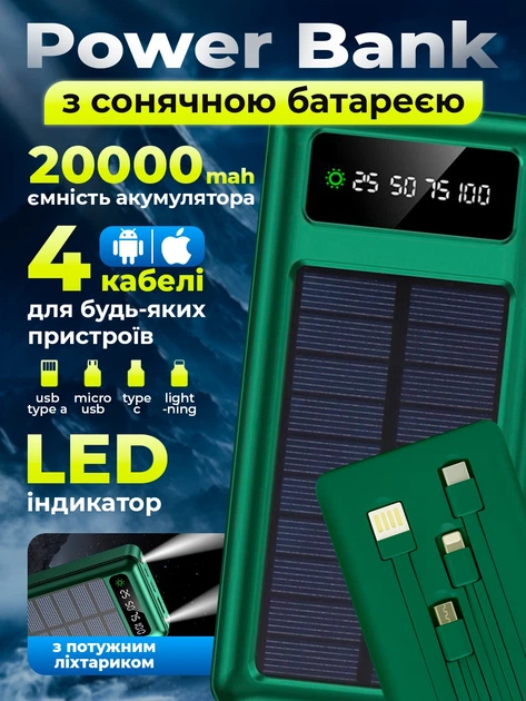 Повербанк умб 20000 mah з сонячною батареєю ліхтариком FOYU FO-9003 павербанк для телефону смартфону пристроїв powerbank з в