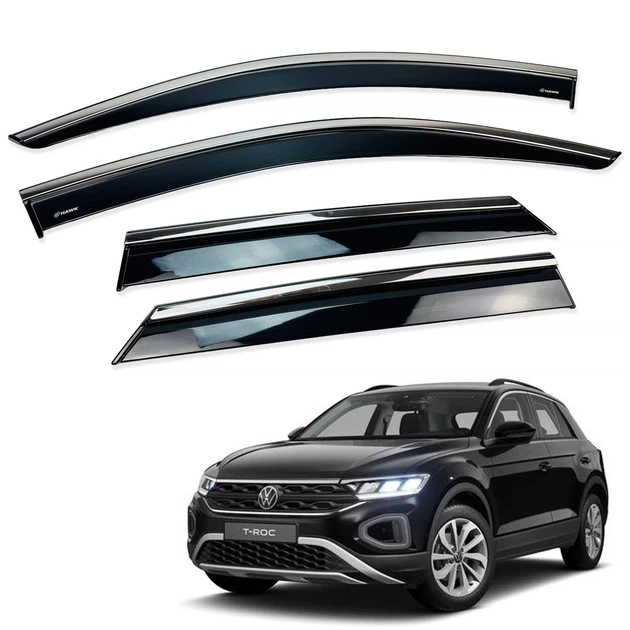 Дефлектори вікон (вітровики) для Volkswagen T-Roc 2018+ з нерж. хром полоскою (HAWK)