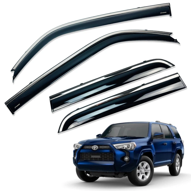 Дефлектори вікон (вітровики) для Toyota 4Runner 2009-2024 з нерж. хром полоскою (HAWK)
