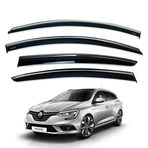 Дефлектори вікон (вітровики) для Renault Megane IV 2016+ Sedan з нерж. хром полоскою 4 шт. (HAWK)