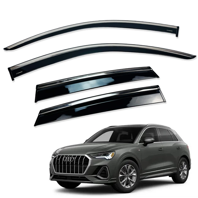 Дефлектори вікон (вітровики) для Audi Q3 2019+ з нерж. хром полоскою (HAWK)