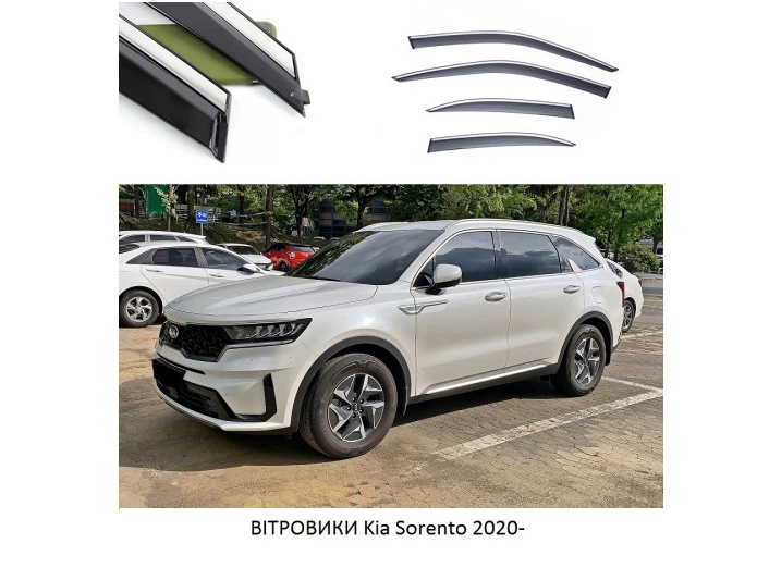 Дефлектори вікон вітровики Kia Sorento 2020- П/К клей FLY молдинг із нержавіючої сталі 3D BKASL2023-W/S (17-18)