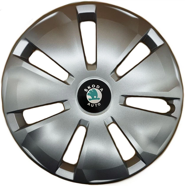Автомобільні модельні колпаки R16 Skoda (зелена) 433 4шт, SJS, сріблясті