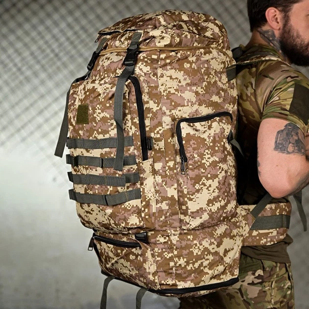Тактичний рюкзак Sahara 50 л з системою кріплення Molle та липучкою піксель 65х45х20 см