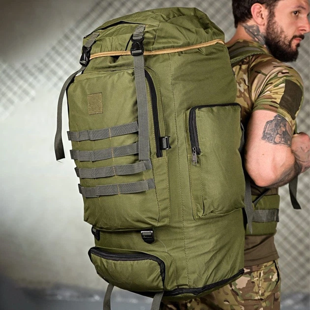Тактичний рюкзак Sahara 50 л з системою кріплення Molle та липучкою олива 65х45х20 см